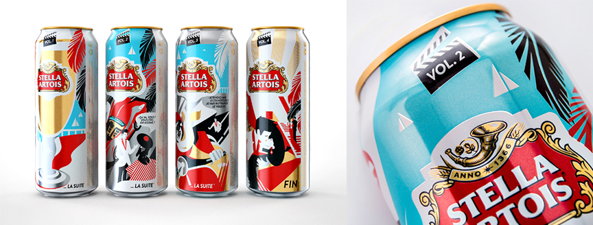 Belgian brand Stella Artois introduced an exclusive series of cans as a sponsor of the Cannes Film Festival. Each can was printed with a scene that would give customers a chance to fantasise and create their own story.